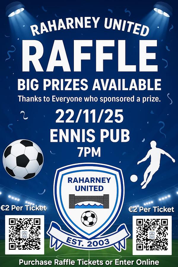 Raharney United are delighted to officially announce that we have a confirmed date for our raffle night! π